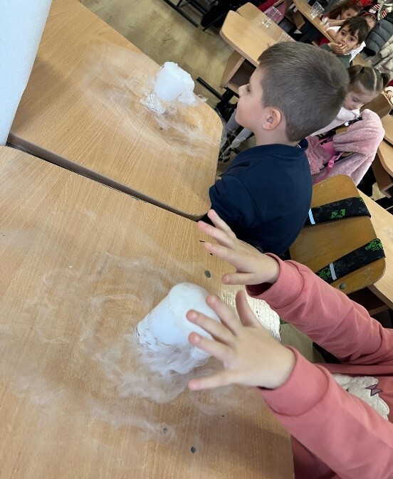 Copiii sunt implicați în frumoasa poveste, experimentează atelierul cu gheață carbonică și sunt încurajați să creioneze povestea împreună cu trainer-ul.